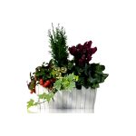 Um arranjo com palmeira, kalanchoe e era.